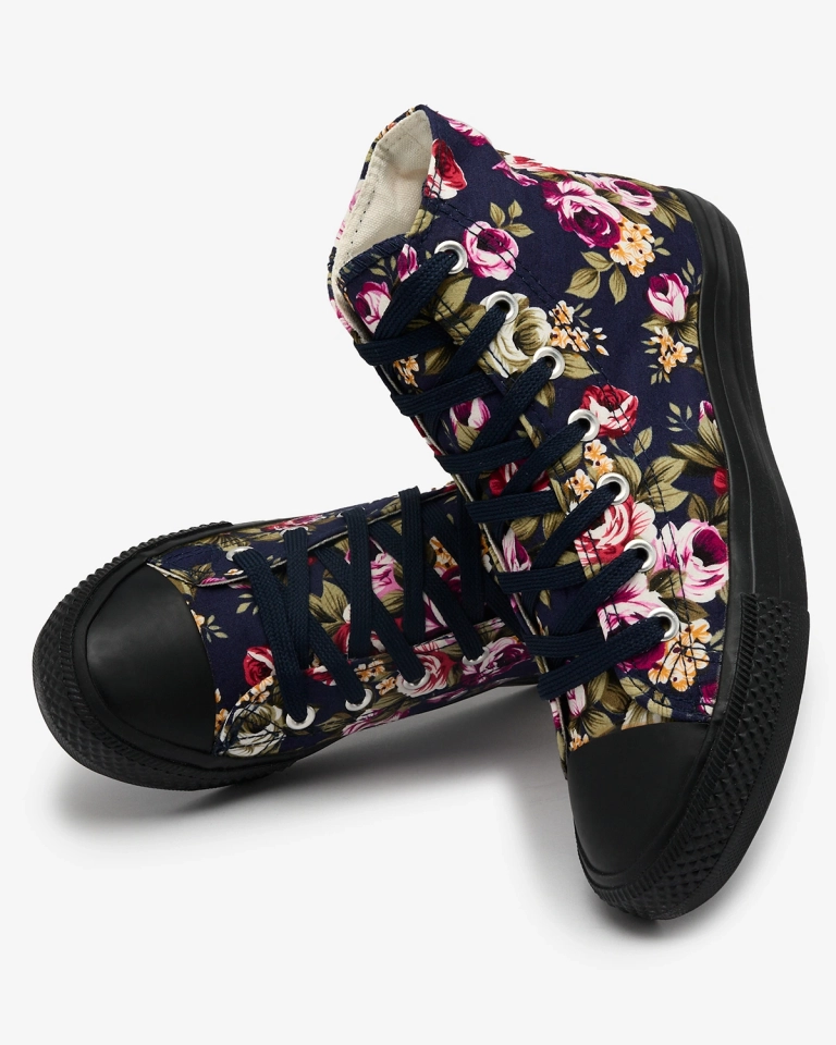 Royalfashion Moteriški aukšti tamsiai mėlyni sportbačiai su spalvingomis gėlėmis Soxic