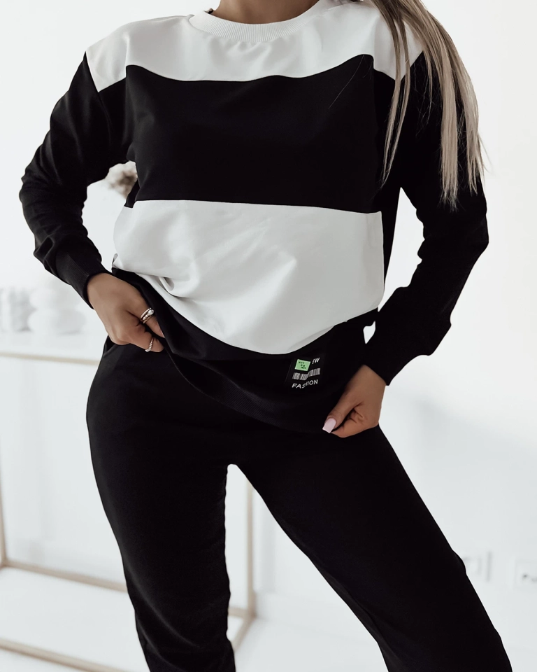 Royalfashion Juodas dryžuotas moteriškas džemperio komplektas