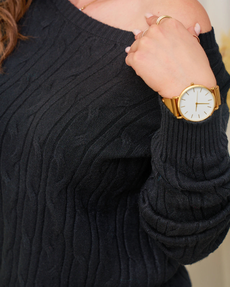 • Šis žavus megztinis puikiai papildys jūsų spintą. Pletenų pynimas suteikia jam elegantišką išvaizdą. Gaminys turi ilgas rankoves ir apvalią iškirptę. Puikus pasirinkimas rudens stiliui!