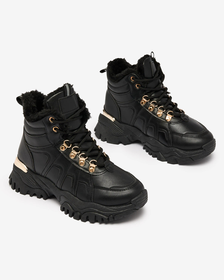 Royalfashion Moteriški juodi sportbačiai su kailiu Megigna