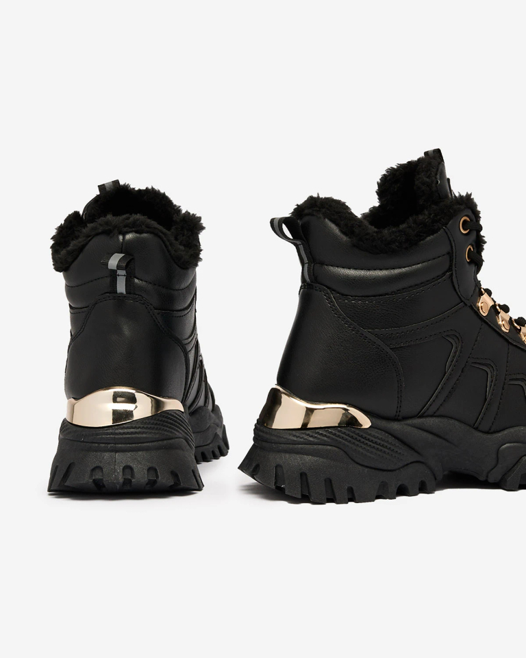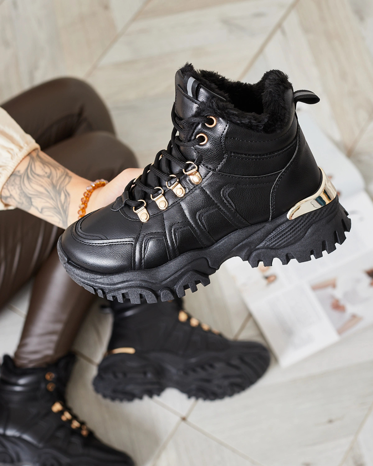 - Sportiniai moteriški sportbačiai storu padu. Viršutinė dalis su raišteliais, pagaminta iš eko odos. Vidus visiškai apšiltintas kailiu. Puikiai tinka prie sportinės aprangos!