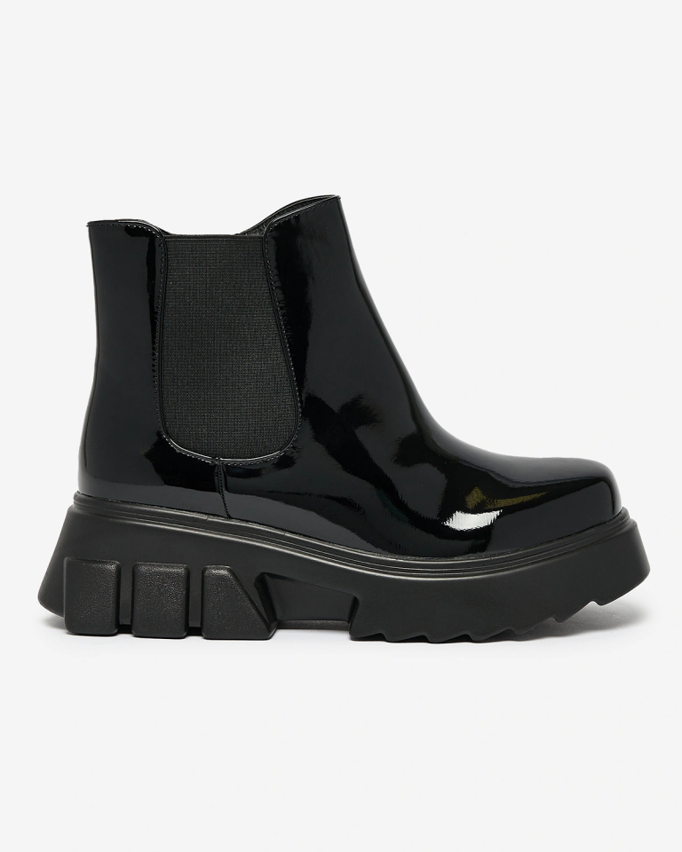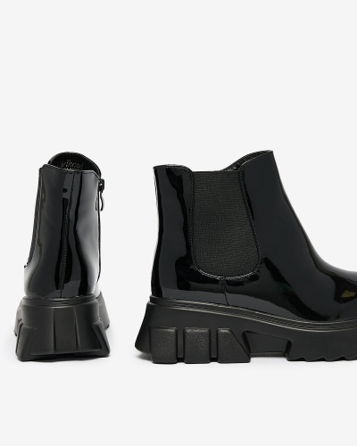 "Royalfashion" Juodi lakuoti apšiltinti moteriški batai "Gloffy"