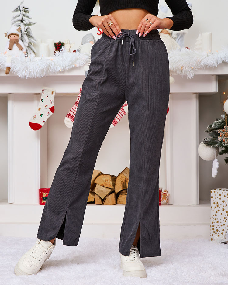 - Sensacingos plačios velveto audinio moteriškos kelnės. Modelis turi elastingą juosmenį su reguliuojamais raiščiais. Be to, priekyje yra dvi užsegamos kišenės. Šio sezono hitas!