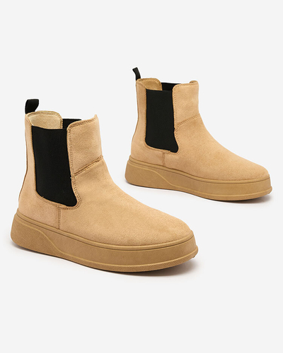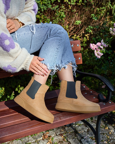 - Stilingi moteriški apšiltinti a'la sniego batai, pagaminti iš ekologiškos zomšos odos. Jų centras užpildytas minkštu kailiuku. Avalynė ant platformos - puikiai tinka žiemos aprangai!