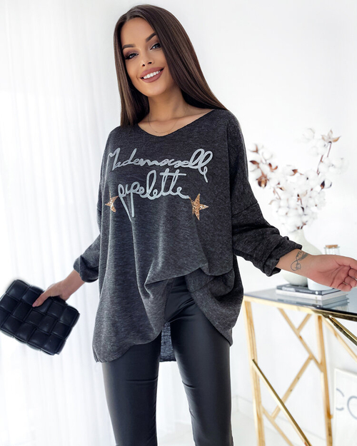 Royalfashion Tamsiai pilka moteriška palaidinė su užrašais