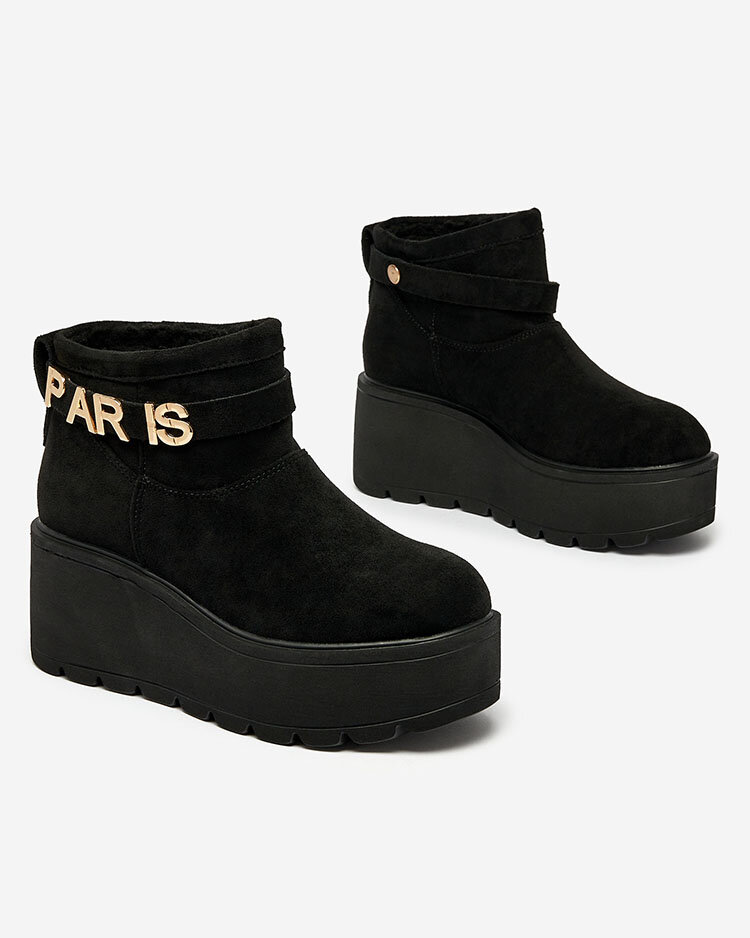 Royalfashion Juodi moteriški batai a'la sniego batai su ornamentu Parisela