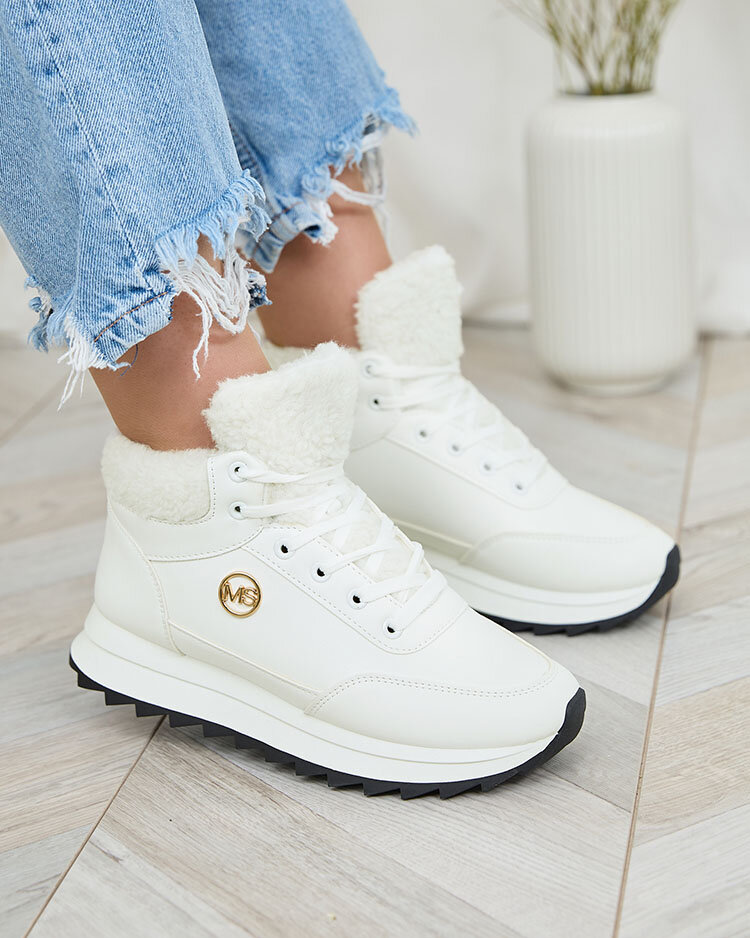 - Moteriški apšiltinti sportiniai bateliai storesniu padu. Avalynės viršus su raišteliais, pagamintas iš ekologiško nubuko. Minkštas kailis viduje. Super priedas prie jūsų žiemos laisvalaikio aprangos!