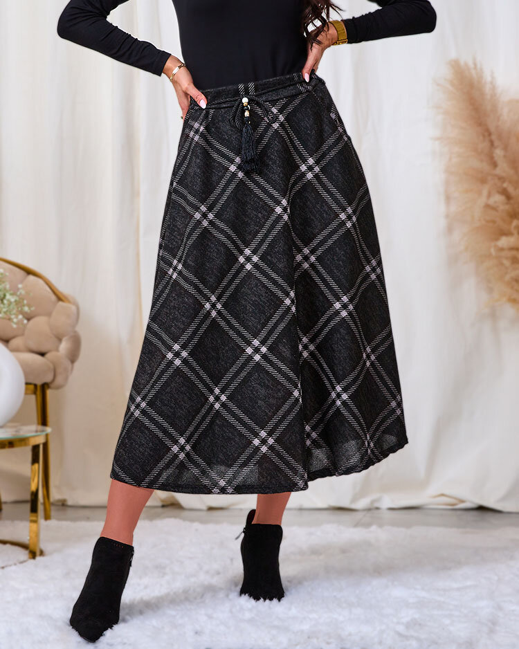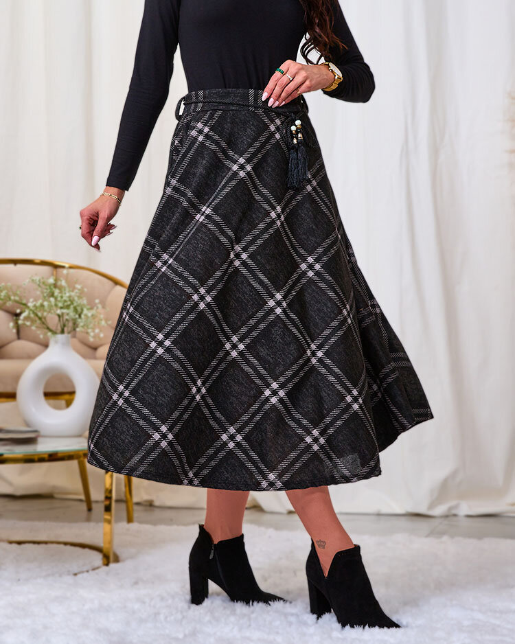 • Moteriškas ilgas sijonas, pasiūtas iš minkšto languoto audinio. Modelis turi elastinę juostą ir juostelę ties liemeniu. Be to, dvi užsegamos kišenės. Puikus pagrindas daugeliui nepakartojamų drabužių! PASTABA: matavimo tikslumas (+/-) 1 cm.
