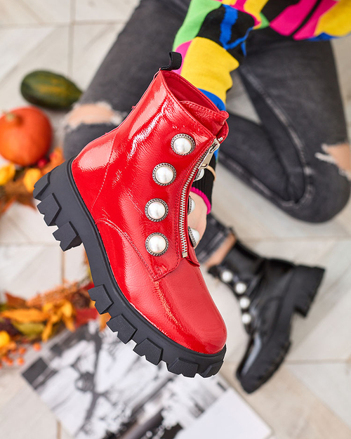 Royalfashion Raudoni lakuoti moteriški batai su perlais Asiciu