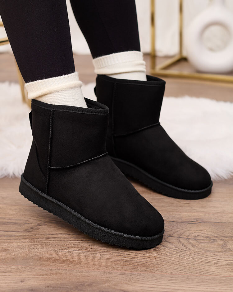 - Puikūs moteriški žieminiai sniego batai plokščiu padu. Batų viršus pagamintas iš organinės zomšos odos, vidurys apšiltintas kailiu. Puikus pagrindas žiemai!