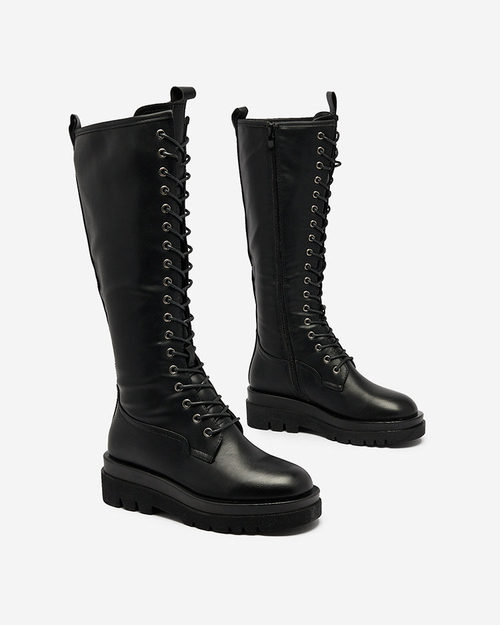 - Moteriški aukšti batai iš ekologiškos odos. Vidus apšiltintas minkštu kailiu. Modelis storesniu padu, suvarstomi raišteliais, papildomai užsegami užtrauktuku. Idealiai tinka žiemai!