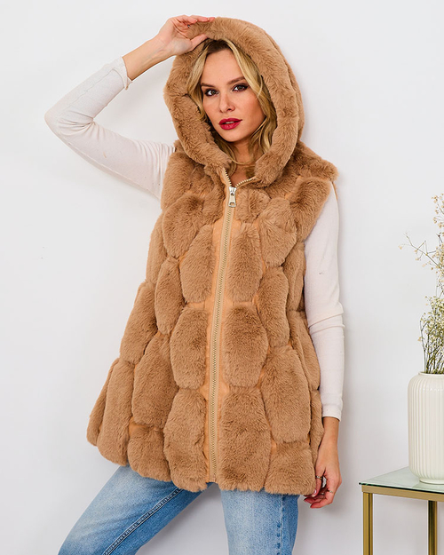 "Royalfashion" Moteriška dirbtinio kailio liemenė smėlio spalvos
