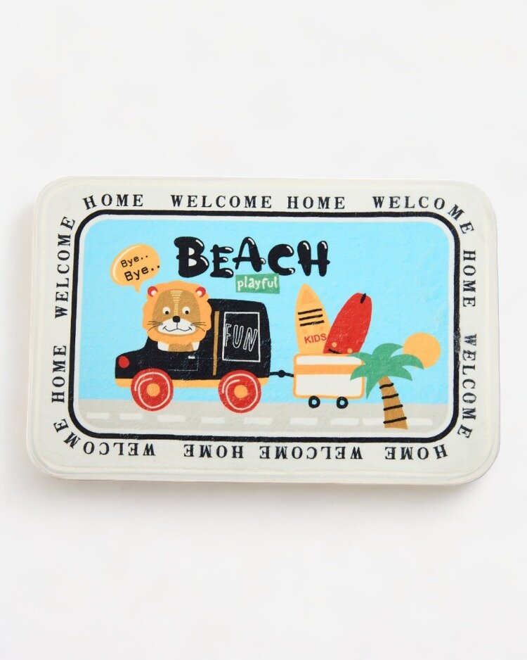- Mažas spalvingas kilimėlis su trumpu pūkeliu ir užrašu "Sveiki atvykę į namus". Jis minkštas ir švelnus, todėl itin malonus liesti. Papildomas kilimėlio privalumas - neslidi jo apačia.