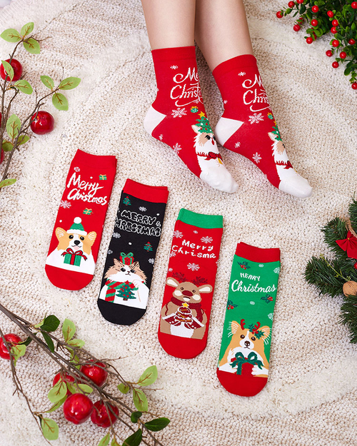 - Šiltos moteriškos kojinės iš medvilninio audinio kalėdiniu raštu. Kojinės puikiai tiks vėsesniems vakarams!