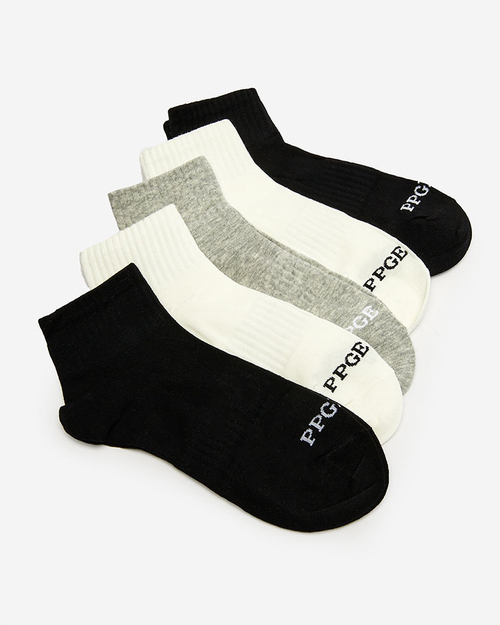- Vyriškų kojinių rinkinys 5 vnt., pagamintas iš malonios medvilninės medžiagos, su dekoratyviniu raukiniu. Jos puikiai priglunda prie kojos, užtikrina judesių laisvę ir kasdienį komfortą.