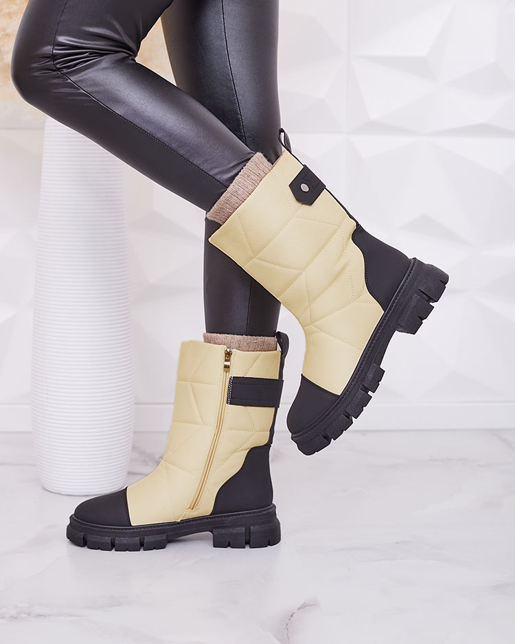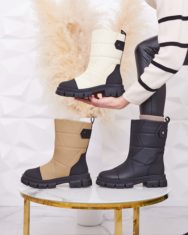 Royalfashion Juodos ir smėlio spalvos matiniai moteriški batai storesniu padu Pihoppi