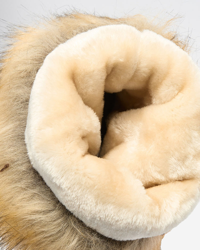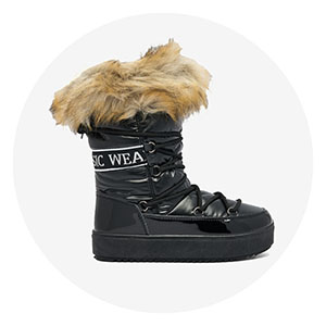 - Moteriški sniego batai, kurių batų viršus pagamintas iš eko lakuotos odos ir a'la aliejinės medžiagos derinio. Viduje - apšiltinimas kailiu, įsispiriami batai. Modelis turi kailį viršutinės dalies gale. Idealiai tinka žiemai!