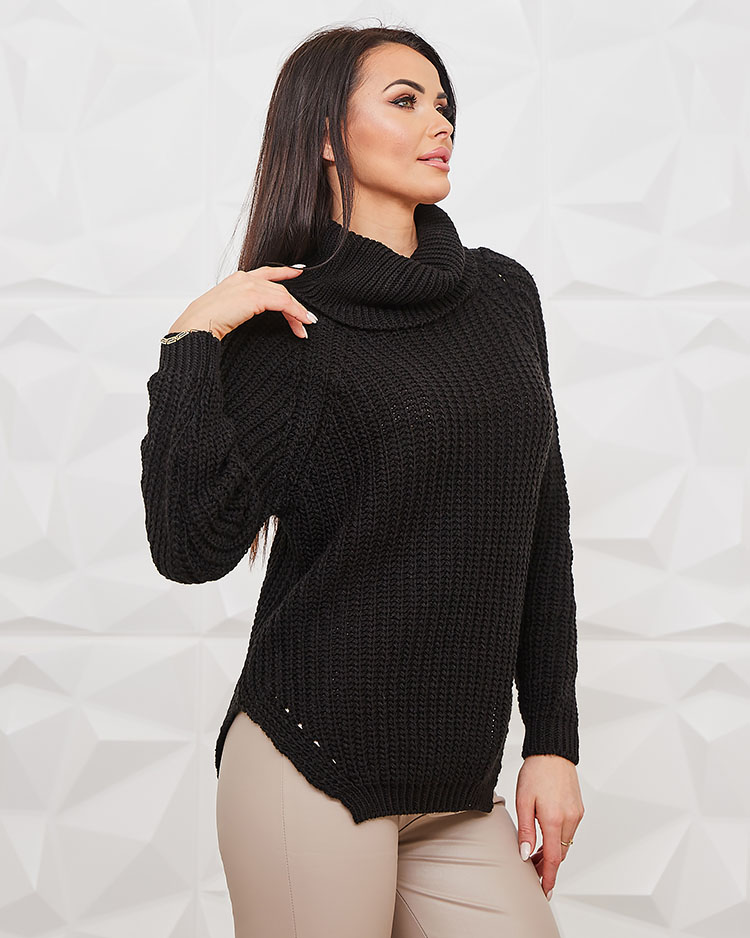 "Royalfashion" Juodas moteriškas megztinis su golfu