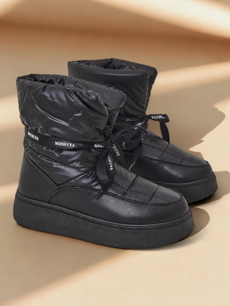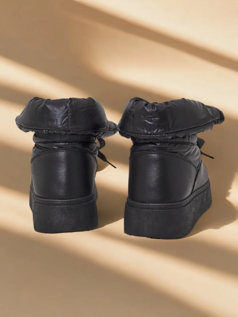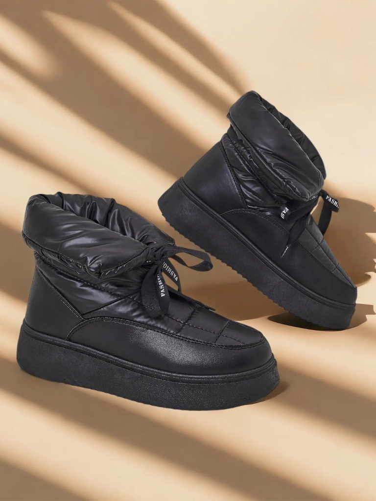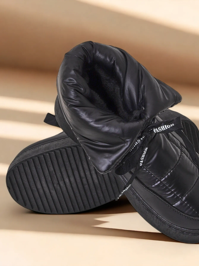• Jausmingi moteriški sniego batai. Batų viršus pagamintas iš medžiagos a'la cerata, o įdėklai - iš ekologiškos odos. Viduje pašiltinimas iš kailio, batai įsispiriami ir turi juostelę. Puikiai tinka šaltajam sezonui!