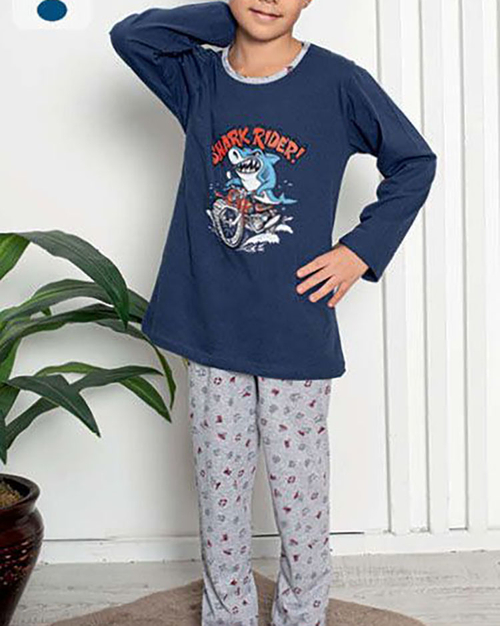 - Dviejų dalių tamsiai mėlynos spalvos berniukų pižama, pagaminta iš 100 % minkštos medvilnės. Komplekte yra sportinio stiliaus dekoratyvinis raštas. Šis modelis - puiki dovana Kalėdų proga! PASTABA: matavimo tikslumas (+/-) 1 cm.