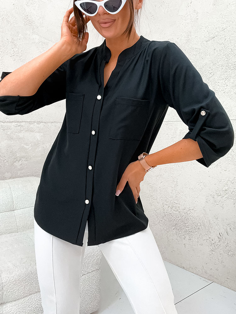 - Klasikinė moteriška palaidinė a'la marškiniai ilgomis, susiaučiamomis rankovėmis. Modelis su apykakle, užsegamas sagomis. Turi būti kiekvienos moters spintoje!