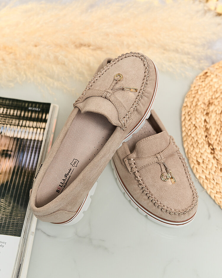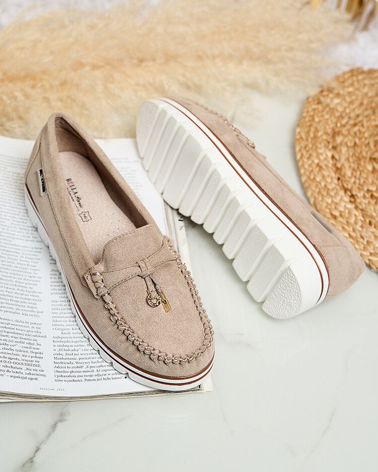 • Kasdieniai moteriški mokasinai plokščiu padu. Modelis pagamintas iš ekologiškos zomšos odos, vidpadis - natūralios odos. Puikus pagrindas kiekvienai dienai!