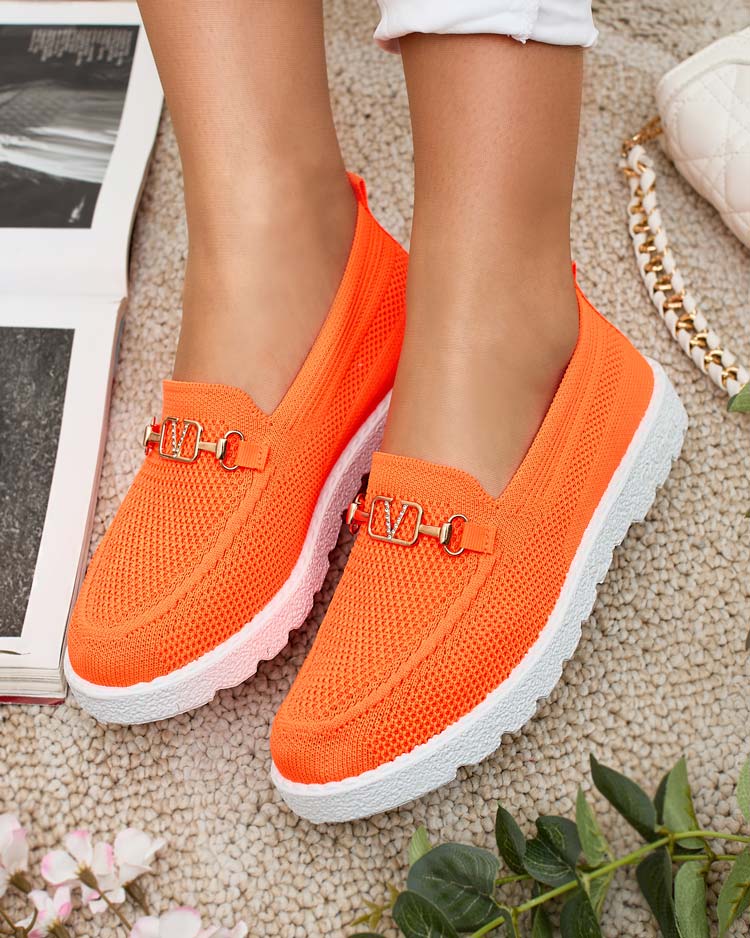 - Patogūs sportinio elegantiško stiliaus moteriški mokasinai. Batviršis pagamintas iš medžiaginės medžiagos, vidpadis taip pat medžiaginis. Nosį puošia aukso metalo ornamentas su cirkonais. Jie bus puiki kasdienio stiliaus puošmena.