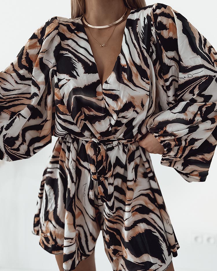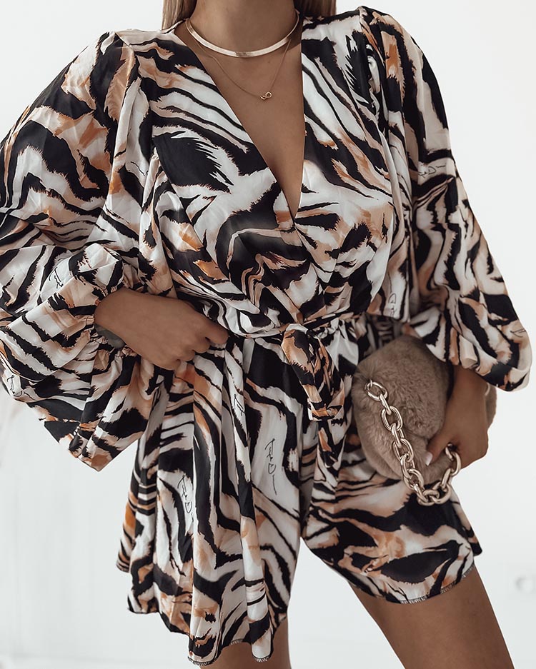 - Moteriškas kombinezonas puikiai tinka vasarai! Jį puošia ryškus raštas. Ilgos, plačios rankovės ir trumpos klešnės suteikia lengvumo, o diržas pabrėžia liemenį. Sukurtas moterims, kurios mėgsta madą ir stilių!