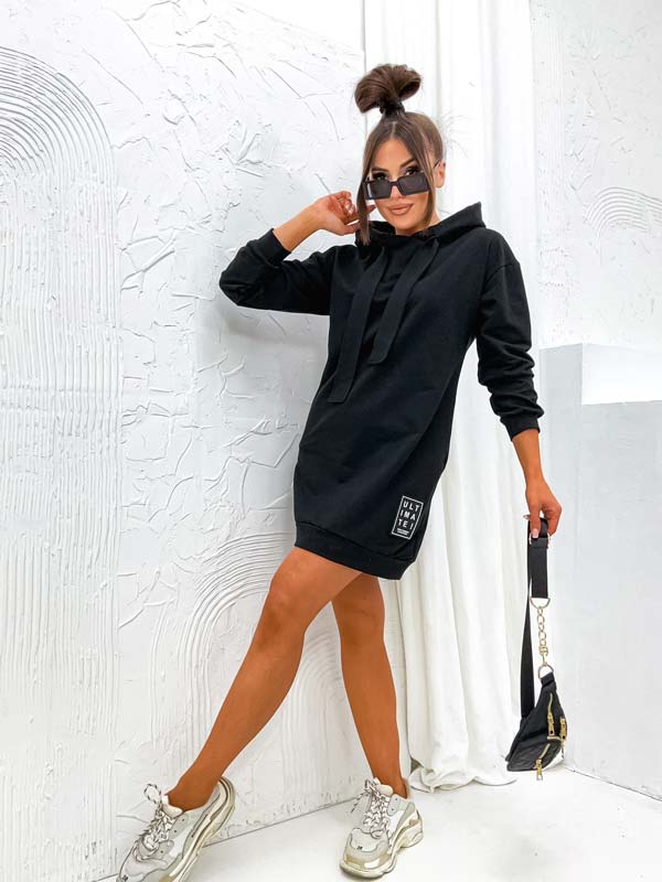- Moteriška mini palaidinės formos suknelė ilgomis rankovėmis ir apvalia iškirpte. Be to, ji turi gobtuvą. Privaloma turėti šį sezoną! PASTABA: matavimų tikslumas (+/-) 1 cm. Matmenys matuoti plokščiai.