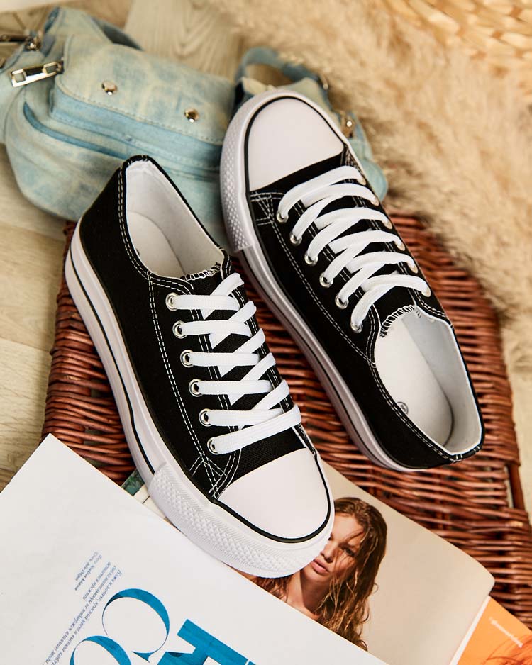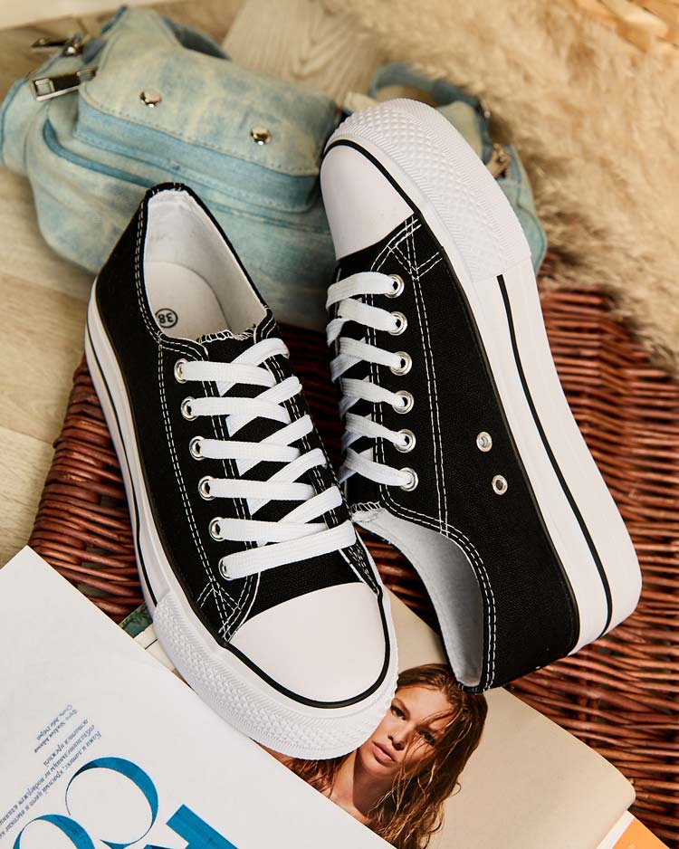• Stilingi moteriški sportiniai bateliai iš audinio. Modelis ant patogios platformos. Viršutinė dalis suvarstoma raišteliais. Puikiai tinka laisvalaikio aprangai kurti!
