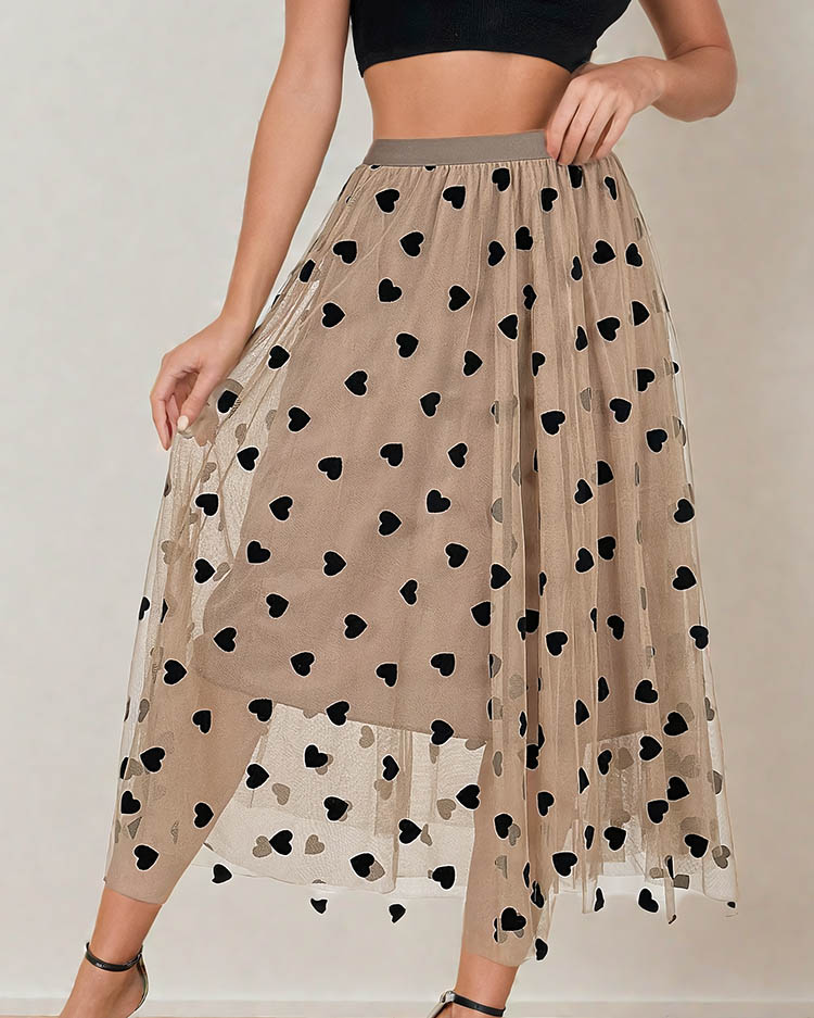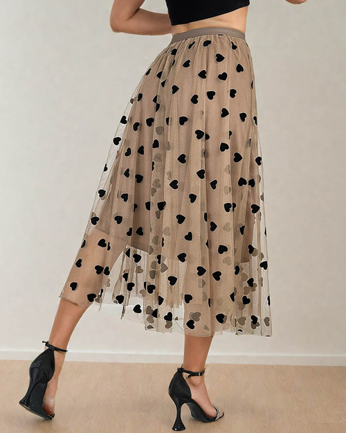 Royalfashion Moteriškas dvisluoksnis midi sijonas su širdelėmis