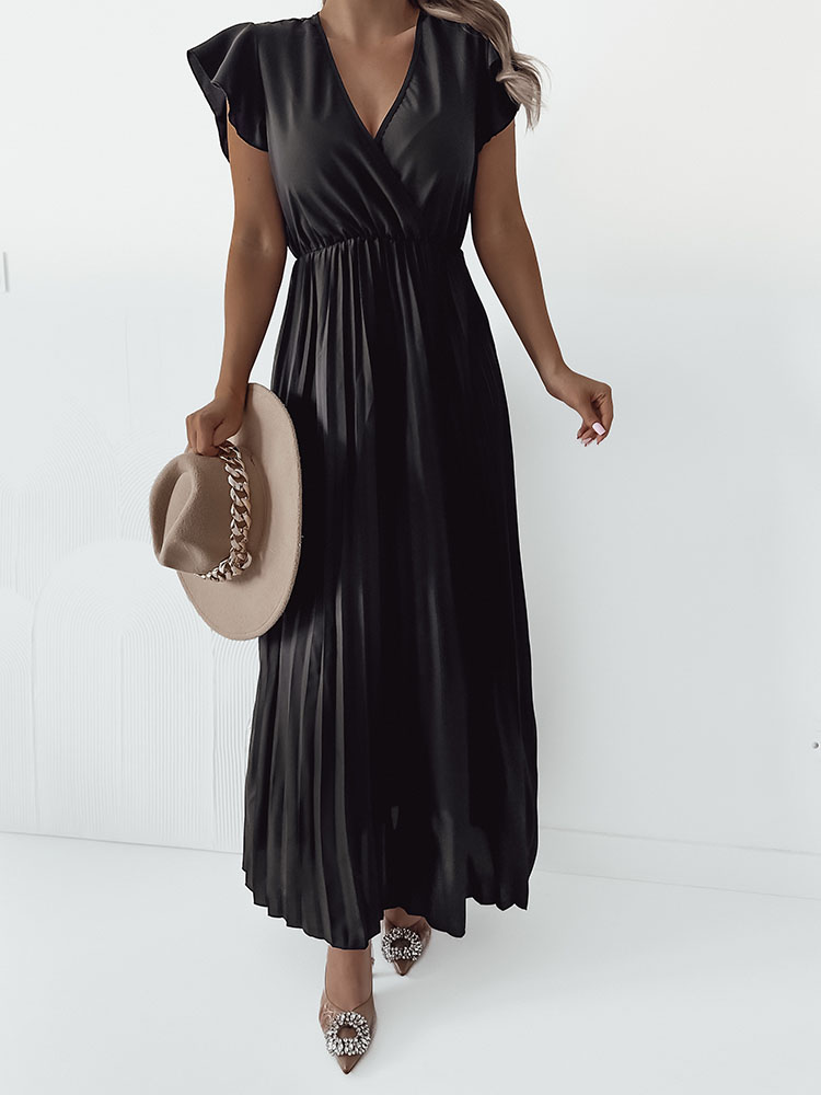 - Išskirtinė moteriška suknelė iš lengvo audinio. Ties liemens aukščiu ji turi elastinę juostą. Gaminys yra midi ilgio, trumpomis rankovėmis ir klostuotu apvadu. Pajuskite vasarą vilkėdama šį modelį!