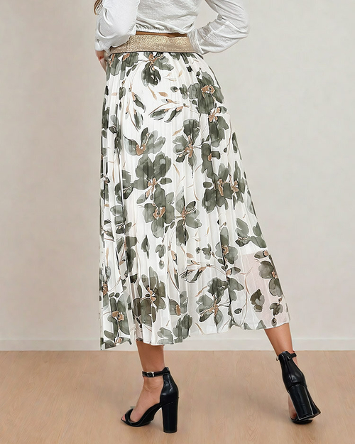 "Royalfashion" Moteriškas plisuotas gėlėtas midi ilgio sijonas