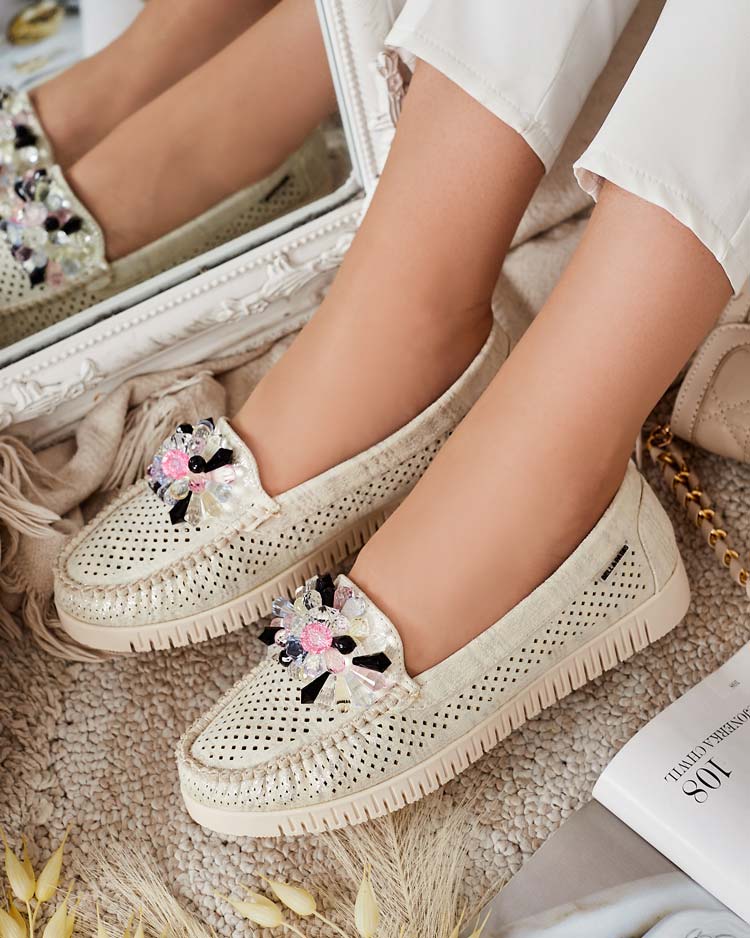 "Royalfashion" Moteriški ažūriniai mokasinai su karoliukais Nasfali