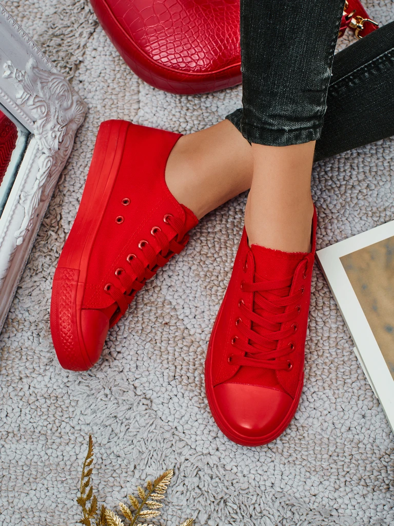- Stilingi moteriški sportiniai bateliai iš audinio medžiagos. Modelis ant patogaus pado. Viršutinė dalis suvarstoma raišteliais. Puikiai tinka laisvalaikio aprangai kurti!