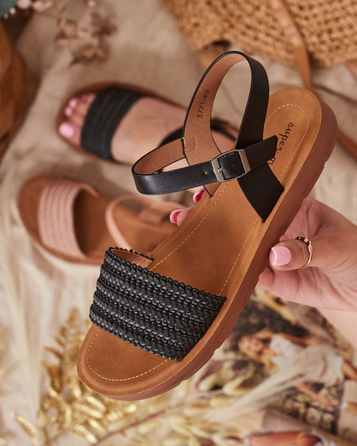 • Moteriški sandalai plokščiu padu pagaminti iš dekoratyvinių šiaudų ir natūralios odos vidpadžio. Avalynė užsegama ekologiškos odos sagtimi. Puikiai tinka madingai vasaros aprangai kurti!