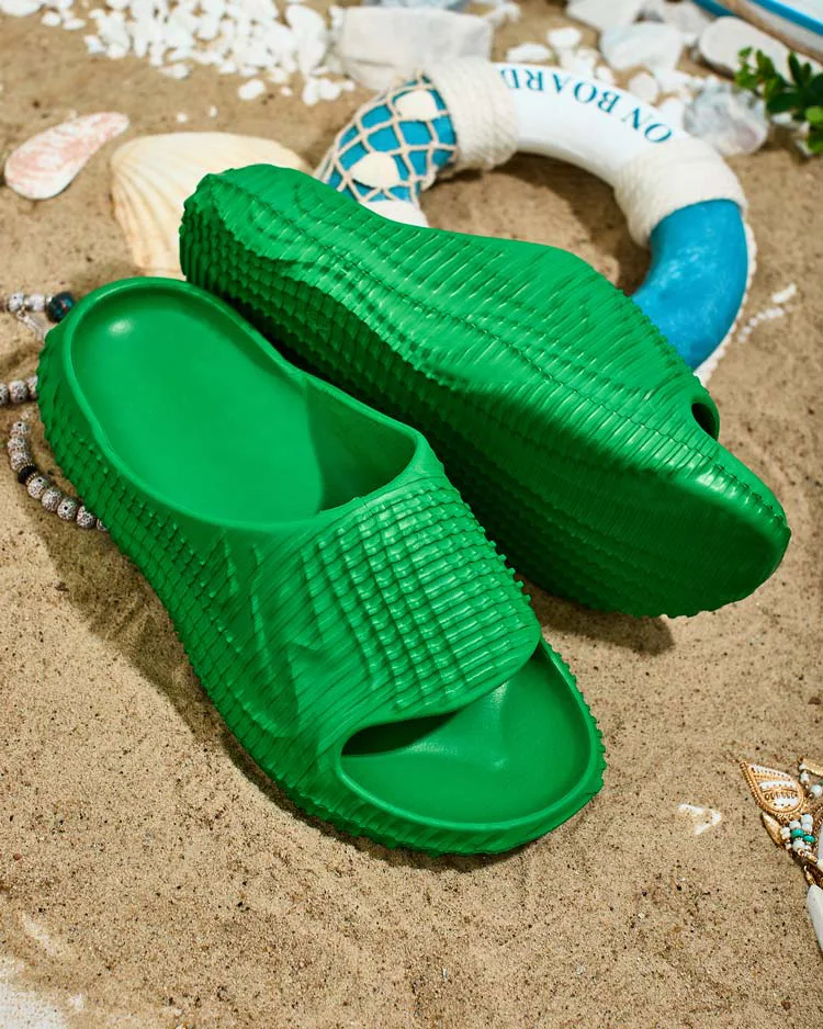 - Puikios moteriškos guminės šlepetės plokščiu padu. Jos turi dekoratyvų reljefinį guminį viršų. Puikus pasirinkimas atostogoms!