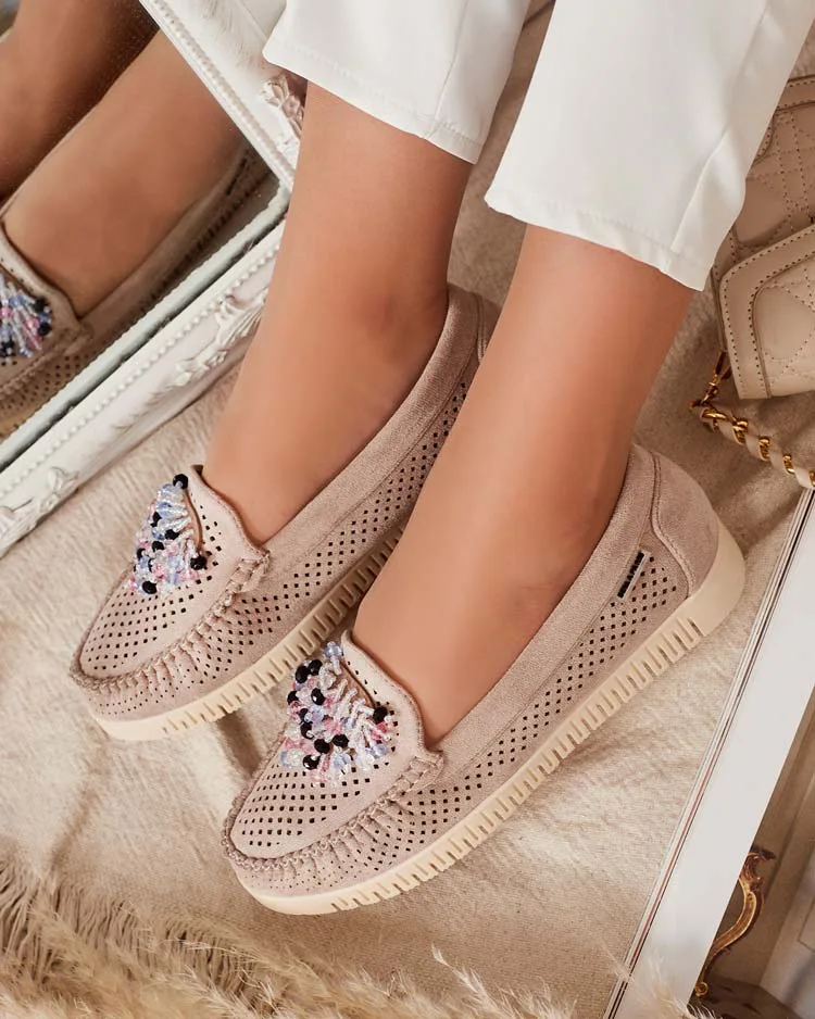 Royalfashion Moteriški ažūriniai mokasinai su karoliukais Namis