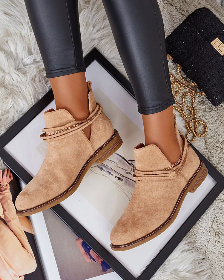 - Stilingi moteriški ekologiškos zomšos batai su natūralios odos vidpadžiu puikiai tinka šaltesnėms dienoms. Svarstomas modelis su dekoratyvinėmis grandinėlėmis ant batviršio. Avalynė plokščiu kulnu ir apvalia nosimi. Super priedas prie jūsų laisvalaikio ap