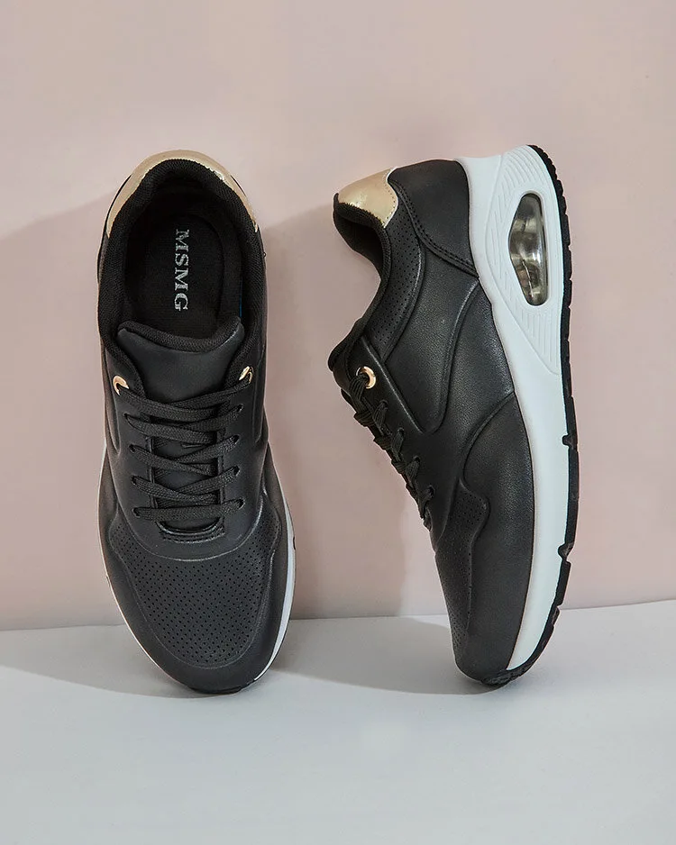 - Madingi moteriški sportiniai bateliai storesniu padu, pagaminti iš ekologiškos odos. Viduje medžiaginis vidpadis, modelis su raišteliais. Jie bus puiki kasdienio stiliaus puošmena.