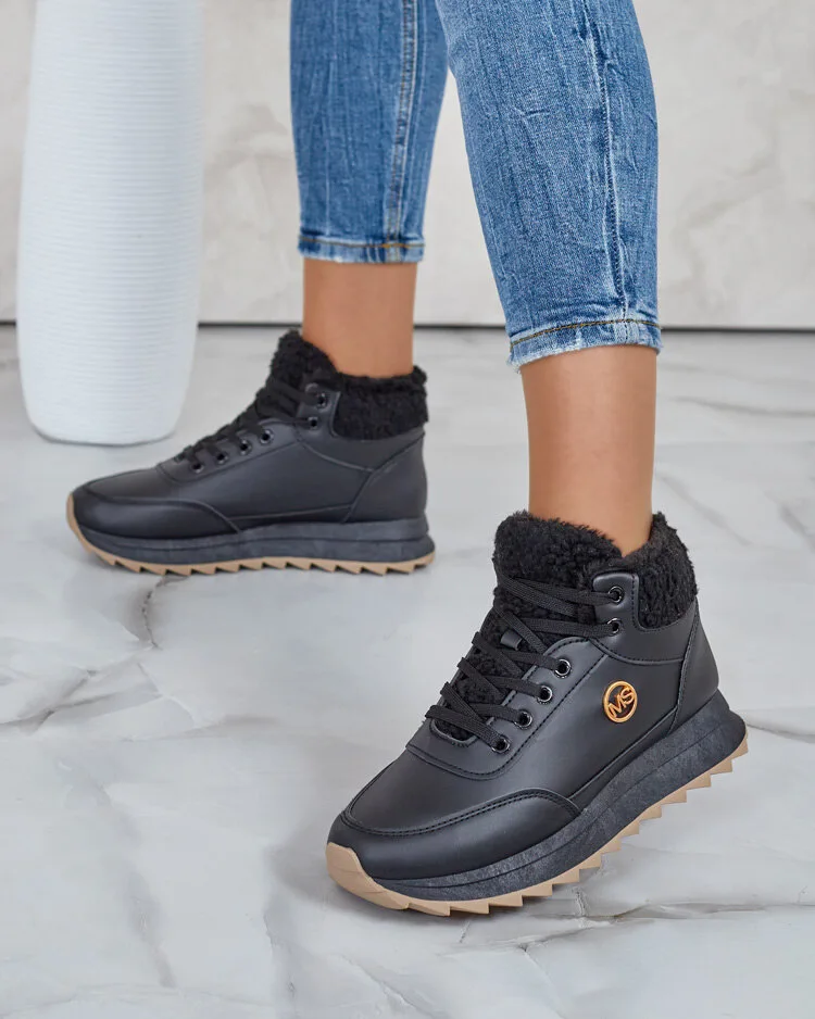 - Moteriški sportiniai sportbačiai storesniu padu. Viršutinė dalis su raišteliais, pagaminta iš ekologiškos odos. Vidus visiškai apšiltintas kailiu. Idealiai tinka šaltesnėms dienoms!