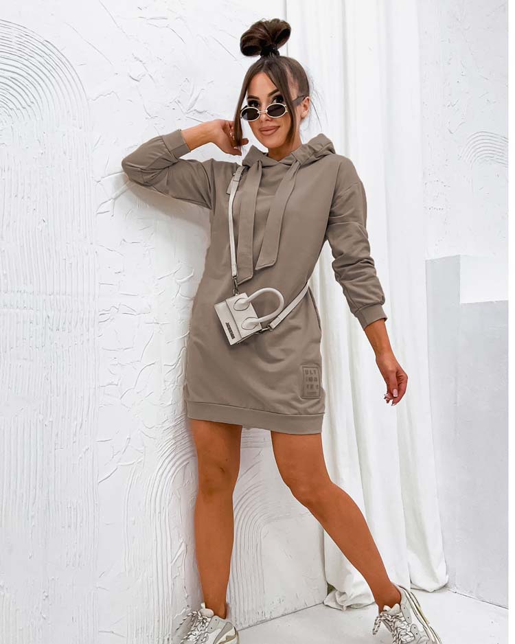 - Moteriška mini palaidinės formos suknelė ilgomis rankovėmis ir apvalia iškirpte. Be to, ji turi gobtuvą. Privaloma turėti šį sezoną! PASTABA: matavimų tikslumas (+/-) 1 cm. Matmenys matuoti plokščiai.