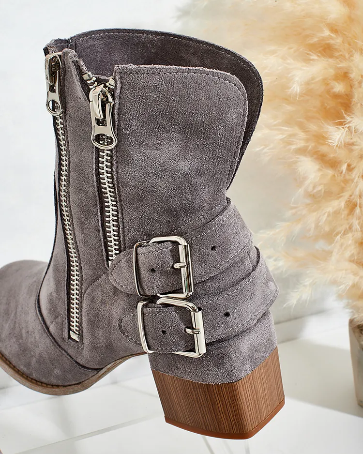 - Stilingi moteriški bateliai stiletu kulnu, kurių viršus dekoruotas sagtimis. Avalynė pagaminta iš ekologiškos zomšos, viduje - medžiaginis vidpadis. Modelis užsegamas užtrauktuku vidinėje pusėje.