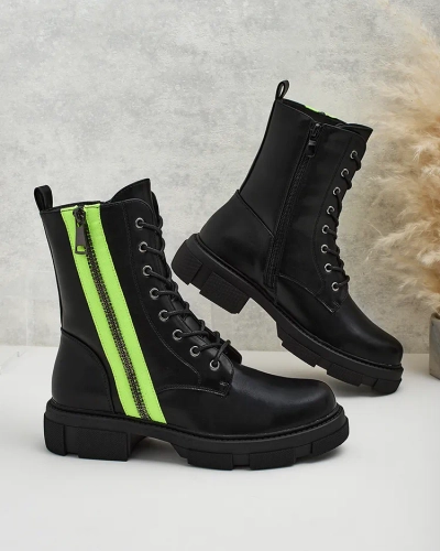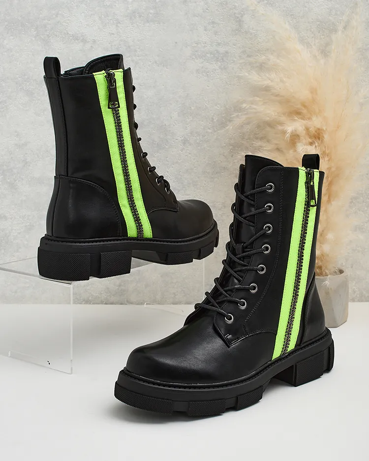 • Stilingi batai iš ekologiškos odos. Batai yra su raišteliais ir užtrauktukais, turi storesnį guminį padą ir kailinį užpildą. Puikiai tinka rudeniui!