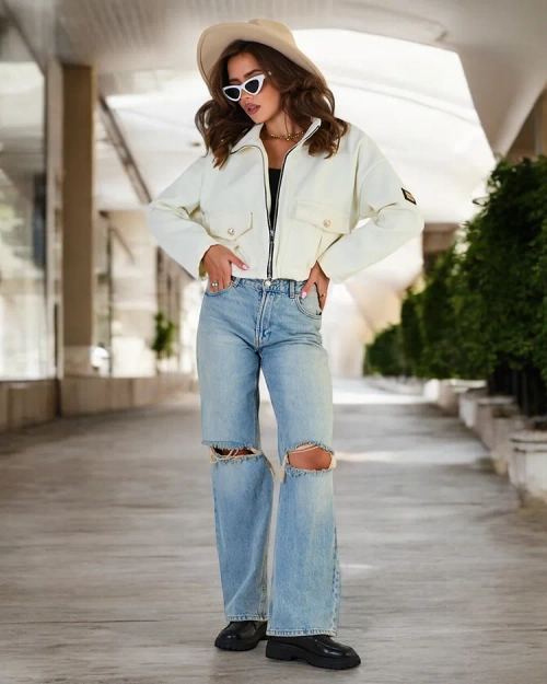 - Stilinga moteriška striukė "Bomber". Modelis ilgomis rankovėmis, turi užtrauktuką ir dvi kišenes. Striukė turi pamušalą. Privaloma turėti šį sezoną! PASTABA: matavimo tikslumas (+/-) 1 cm.