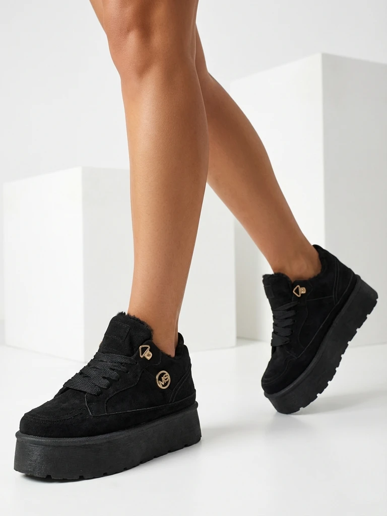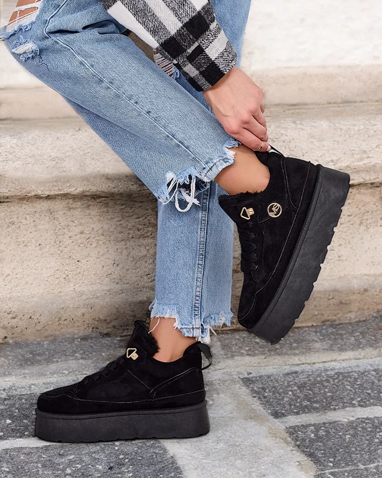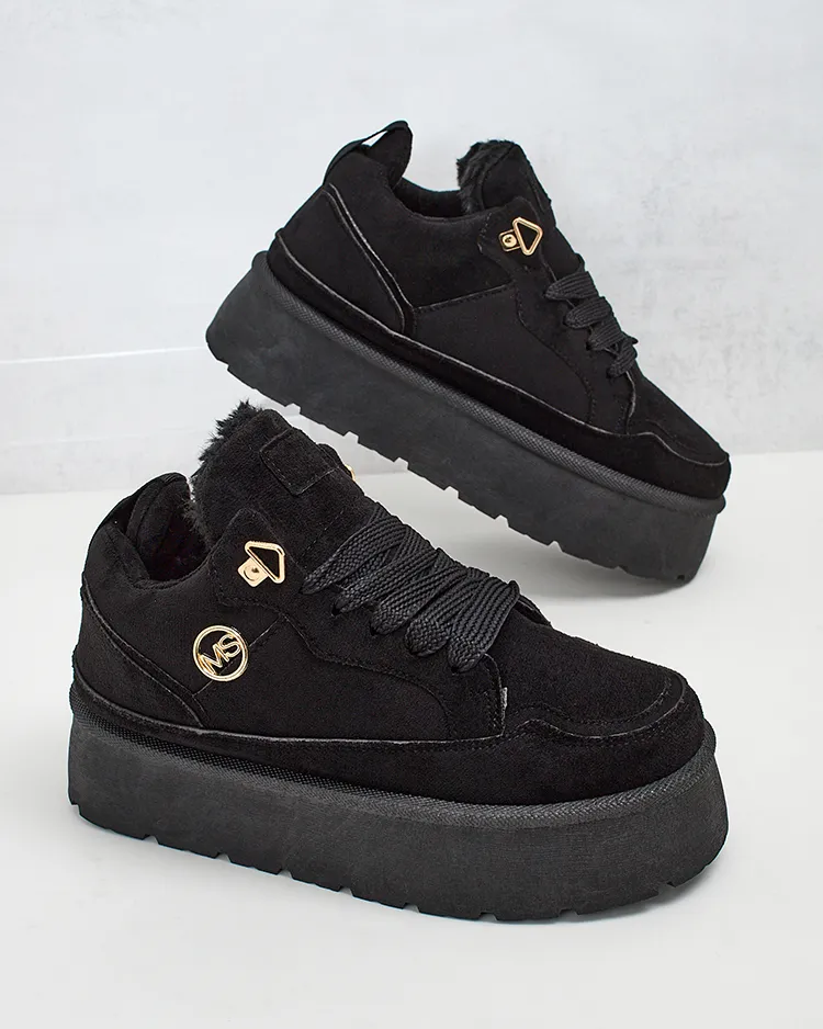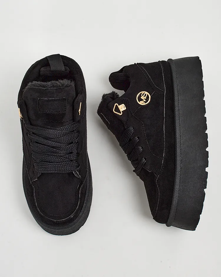 - Moteriški sportiniai platforminiai sportbačiai. Viršutinė dalis su raišteliais, pagaminta iš ekologiškos odos. Vidus visiškai apšiltintas kailiu. Puikiai tinka prie sportinės aprangos!