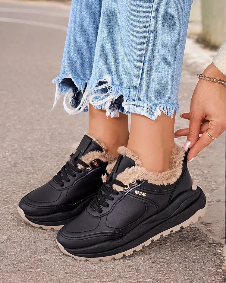 • Moteriški apšiltinti sportiniai bateliai storesniu padu. Nėriniuotas batviršis pagamintas iš ekologiškos odos. Minkštas kailis viduje. Super priedas prie jūsų žiemos laisvalaikio aprangos!