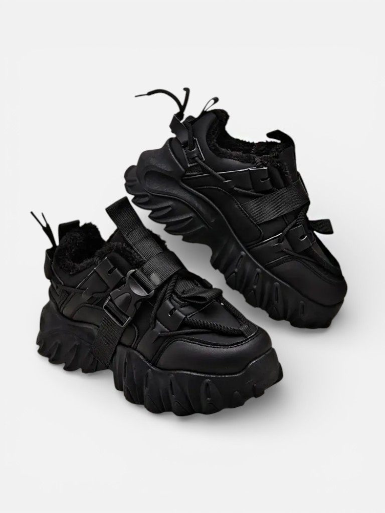 - Moteriški sportiniai sportbačiai storesniu padu. Viršutinė dalis su raišteliais, pagaminta iš ekologiškos odos. Vidus visiškai apšiltintas kailiu. Idealiai tinka prie sportinės aprangos!