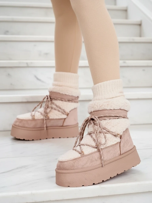 - Moteriški sniego batai, kurių viršutinė dalis pagaminta iš eko zomšos odos ir a' la avikailio medžiagos derinio. Vidus išklotas kailiu, avalynė suvarstoma ir suvarstoma raišteliais. Puikiai tinka žiemai!