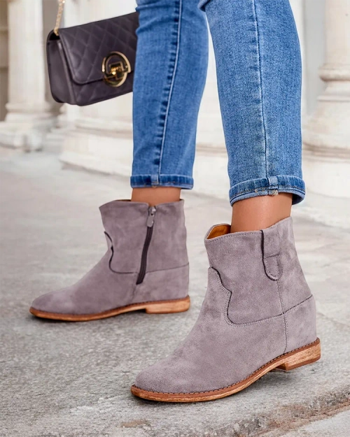 - Bežeiniai vakariško stiliaus batai pagaminti iš ekologiško odos atspalvio. Modelyje yra šiluminė izoliacija minkštu kailiu. Bateliai ant žemai apmuštos platformos. Batai užsegami su užtrauktuku.